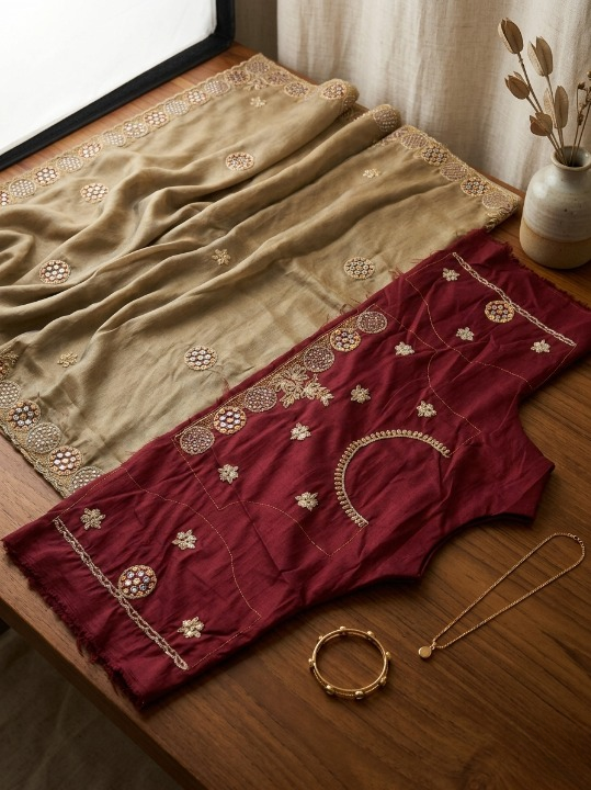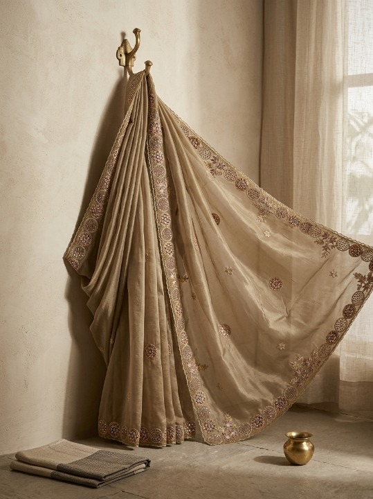 Heavily embroidered border featuring moti